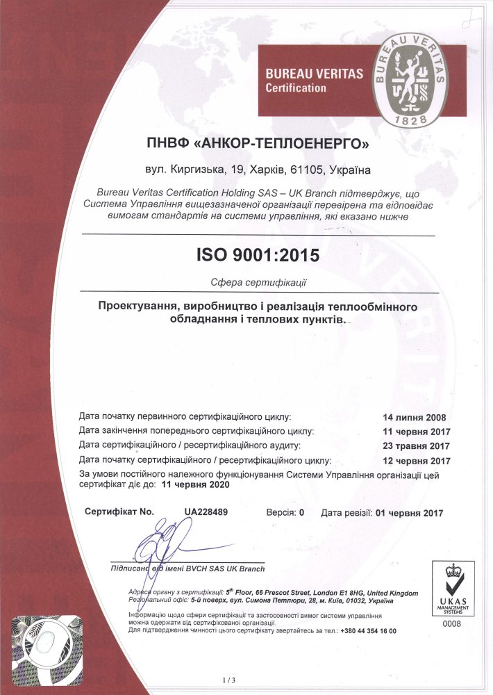 Производство сертифицировано согласно международному стандарту ISO 9001:2008
